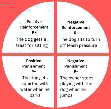 Balanced training implements all four quadrants of operant conditioning (positive reinforcement, negative reinforcement, positive punishment, and negative punishment) and carefully chosen tools based on your dog's unique situation.